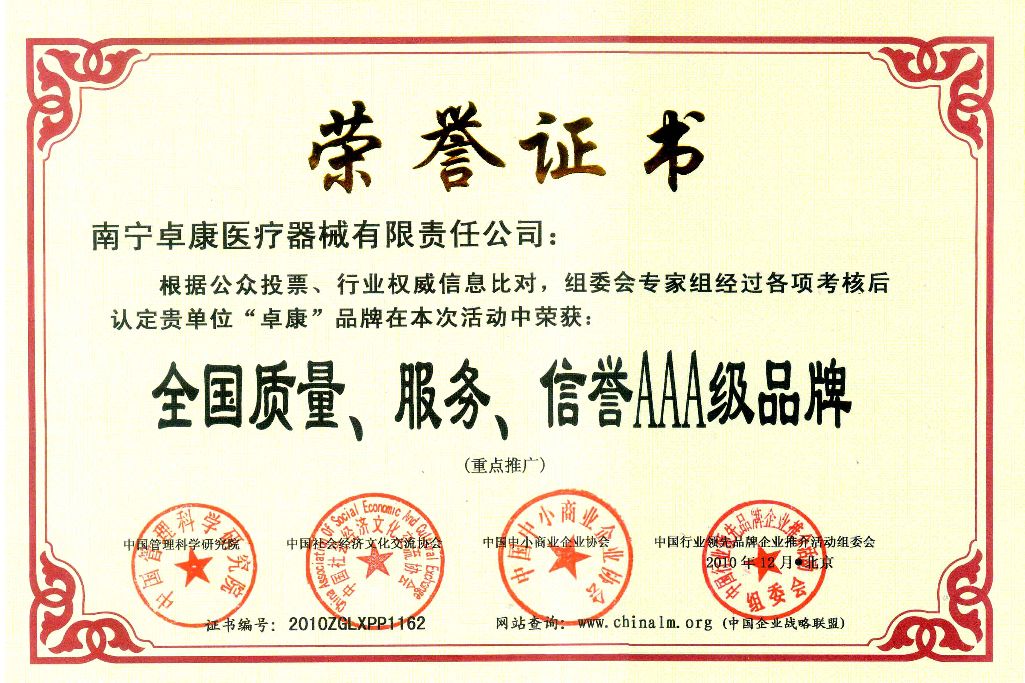 陸江榮獲引領(lǐng)行業(yè)發(fā)展杰出貢獻(xiàn)人物證書 --------卓康公司榮獲全國質(zhì)量、服務(wù)、信譽(yù)AAA級(jí)品牌證書