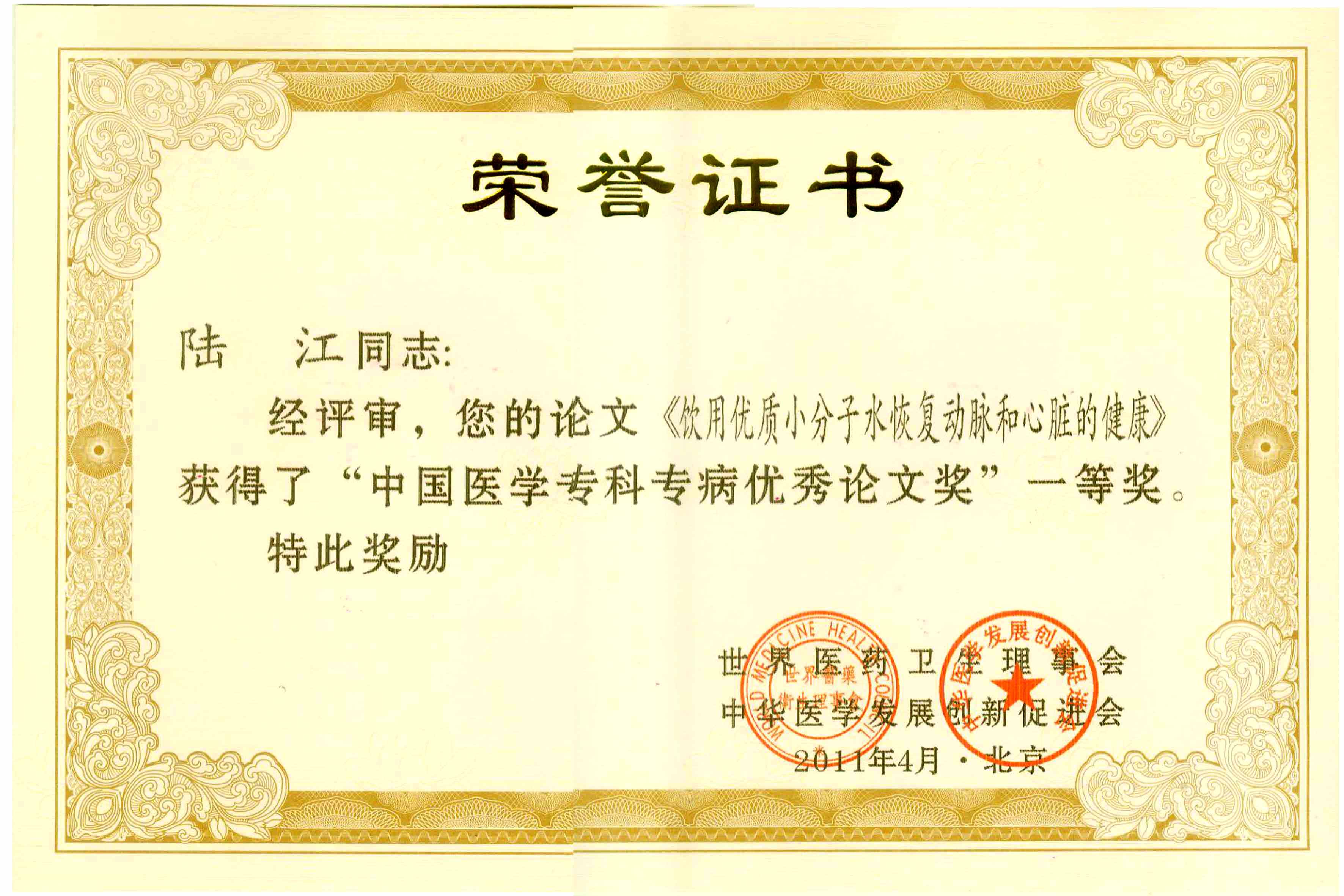 陸江獲得中國醫(yī)學(xué)??茖2?yōu)秀專家恃別貢獻(xiàn)獎(jiǎng)
