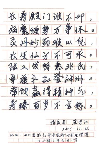 凡尊重中國古代養(yǎng)生智慧的患者,堅(jiān)持“已饑方食”和定時(shí)主動(dòng)補(bǔ)水者,均可祛病康復(fù)。如牡丹江醫(yī)學(xué)院87歲的張鵬圖飲用半年后高血壓未痊愈,陸江與他通話交流,了解他原先每日主食4兩,建議他用“已饑方食”減少主食肉食量,他理解后,將每日主食減為3兩,少吃兩塊肉,飲用一年治愈26年的冠心病和高血壓。他2003年5月31日來信說:“飲用卓康小分子團(tuán)水是根治高血壓、冠心病、糖尿病的一把金鑰匙,是填補(bǔ)醫(yī)學(xué)空白,為人類造福,應(yīng)推廣該產(chǎn)品。”