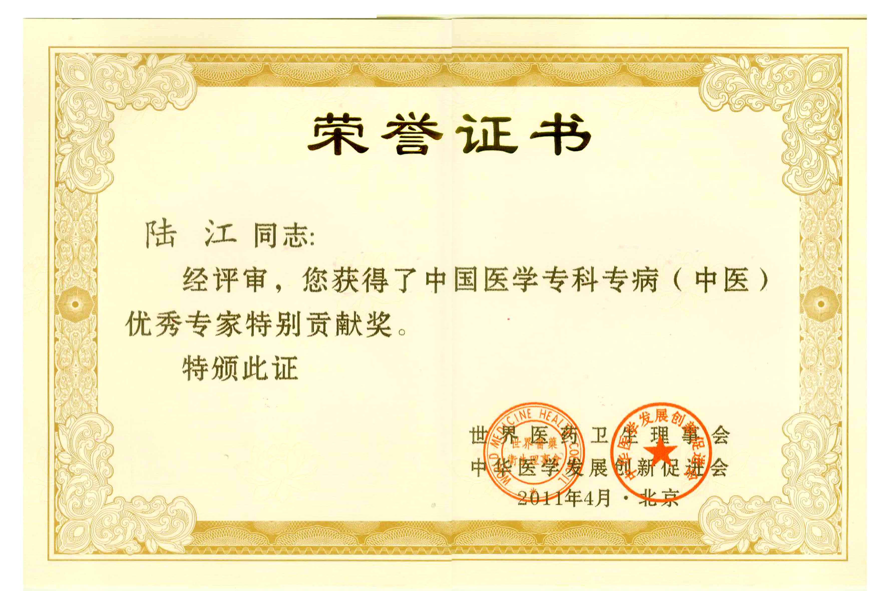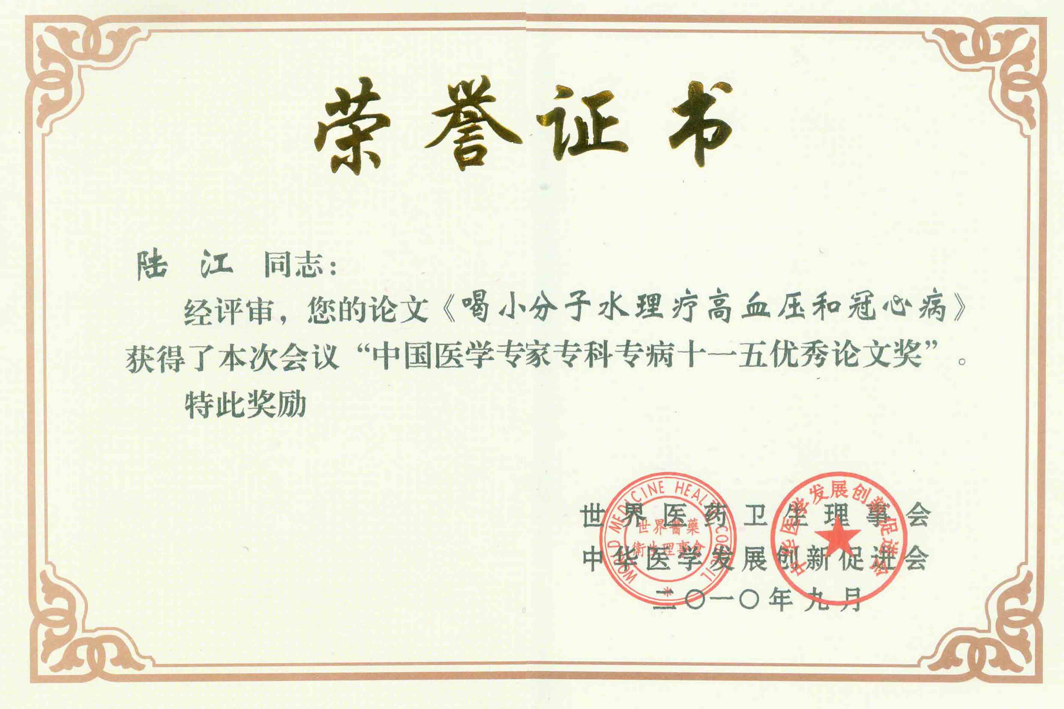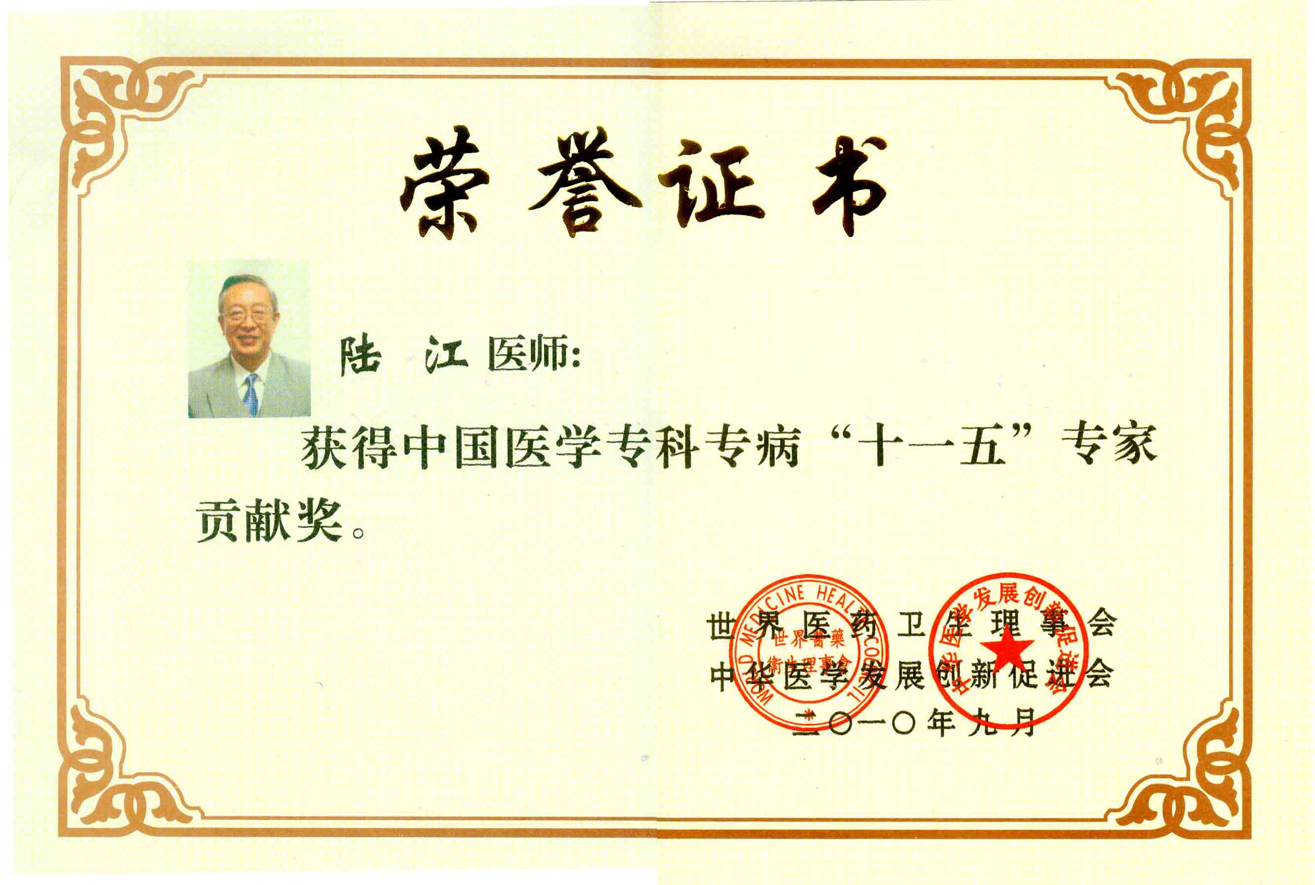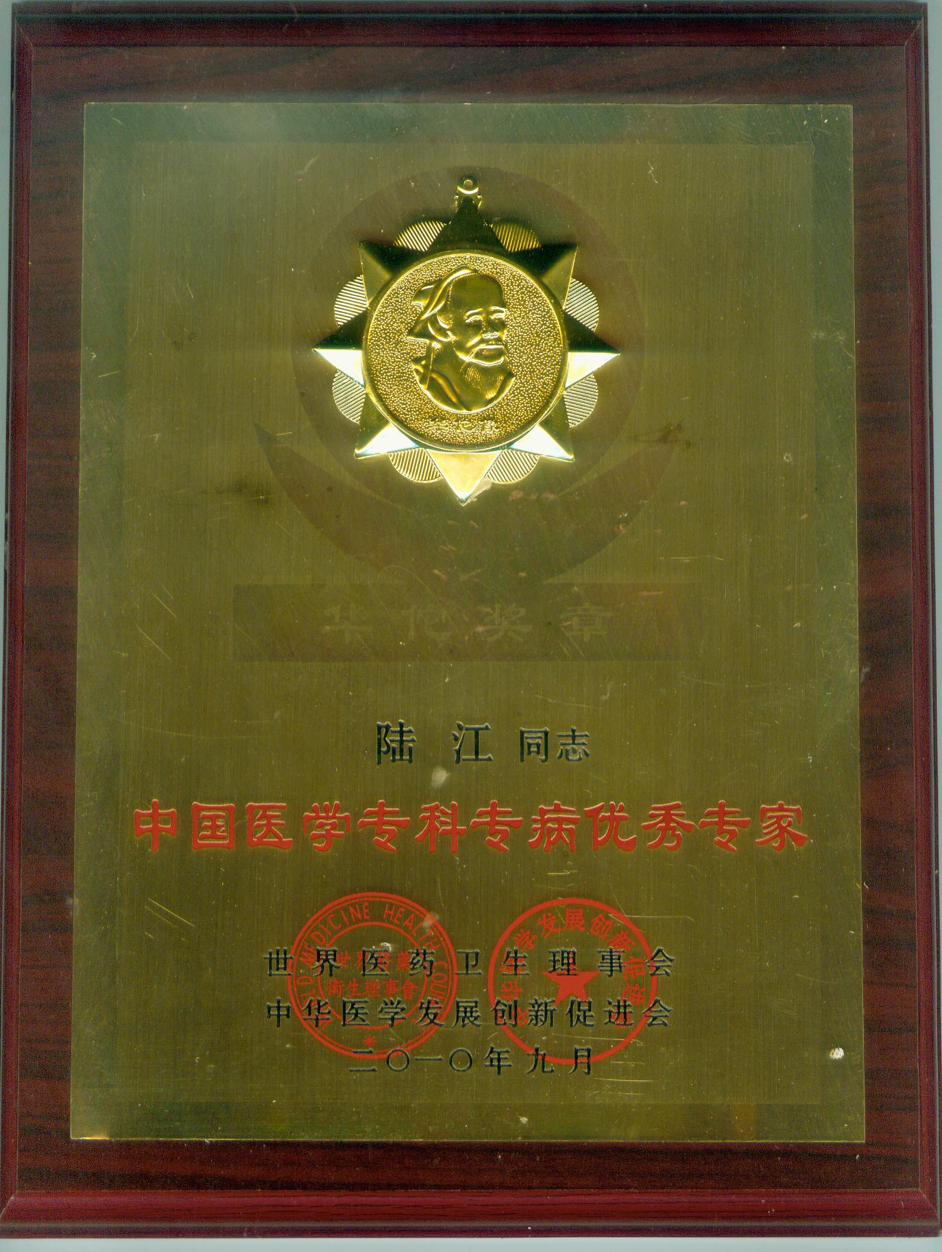 陸江獲得中國醫(yī)學(xué)??茖2?yōu)秀專家恃別貢獻(xiàn)獎(jiǎng)