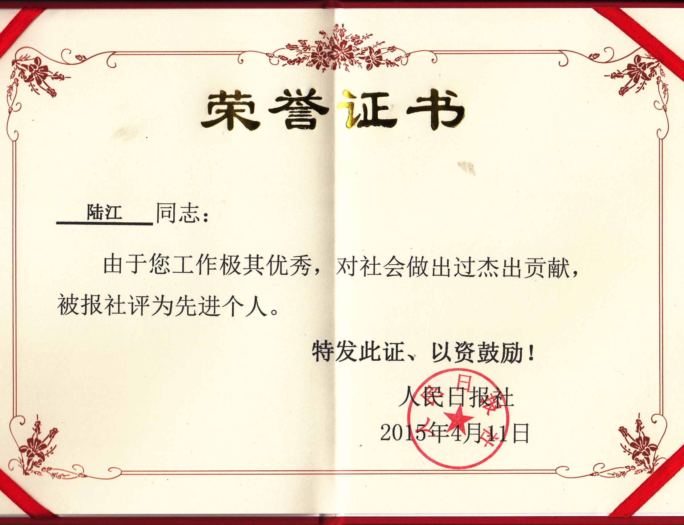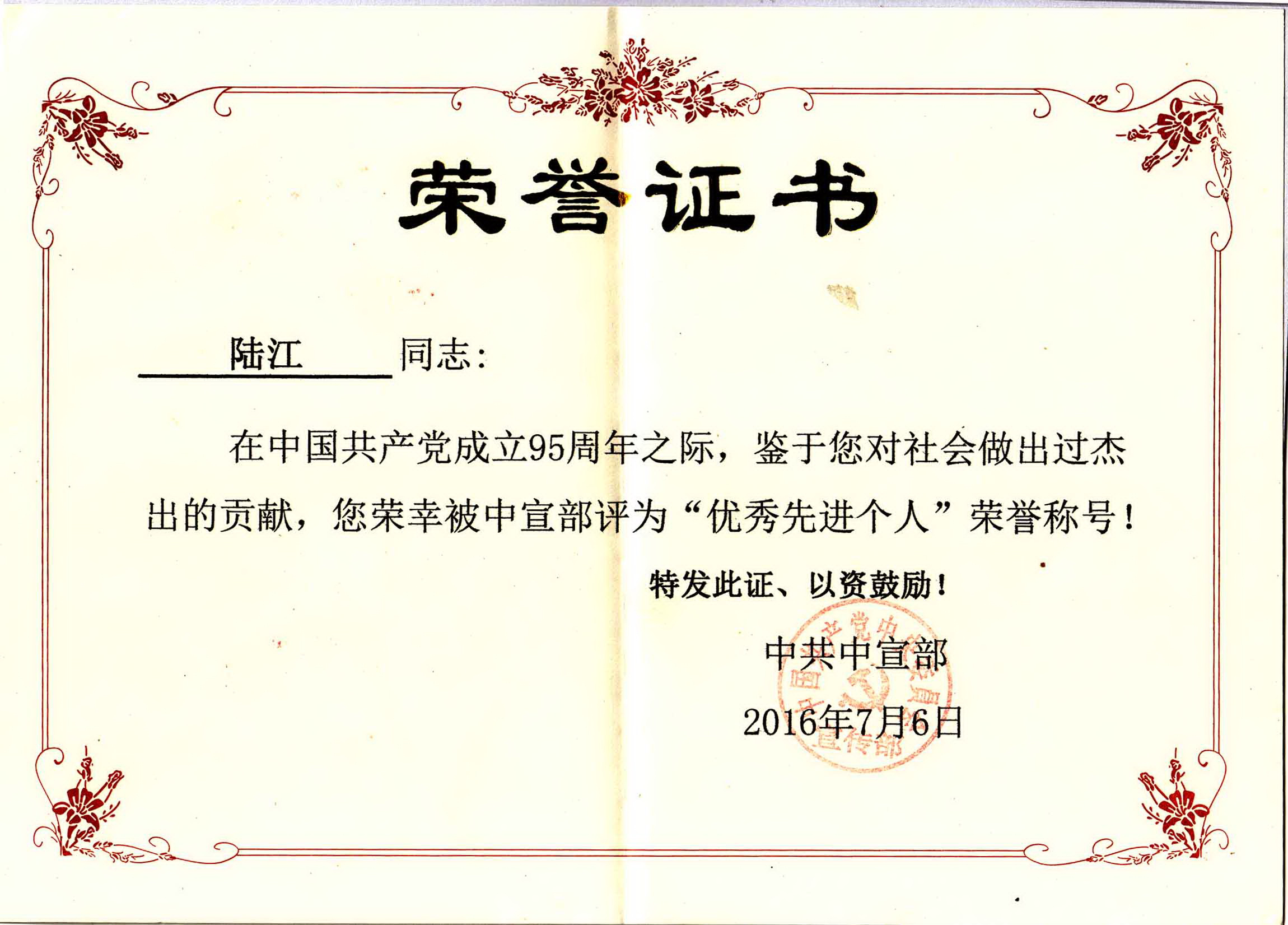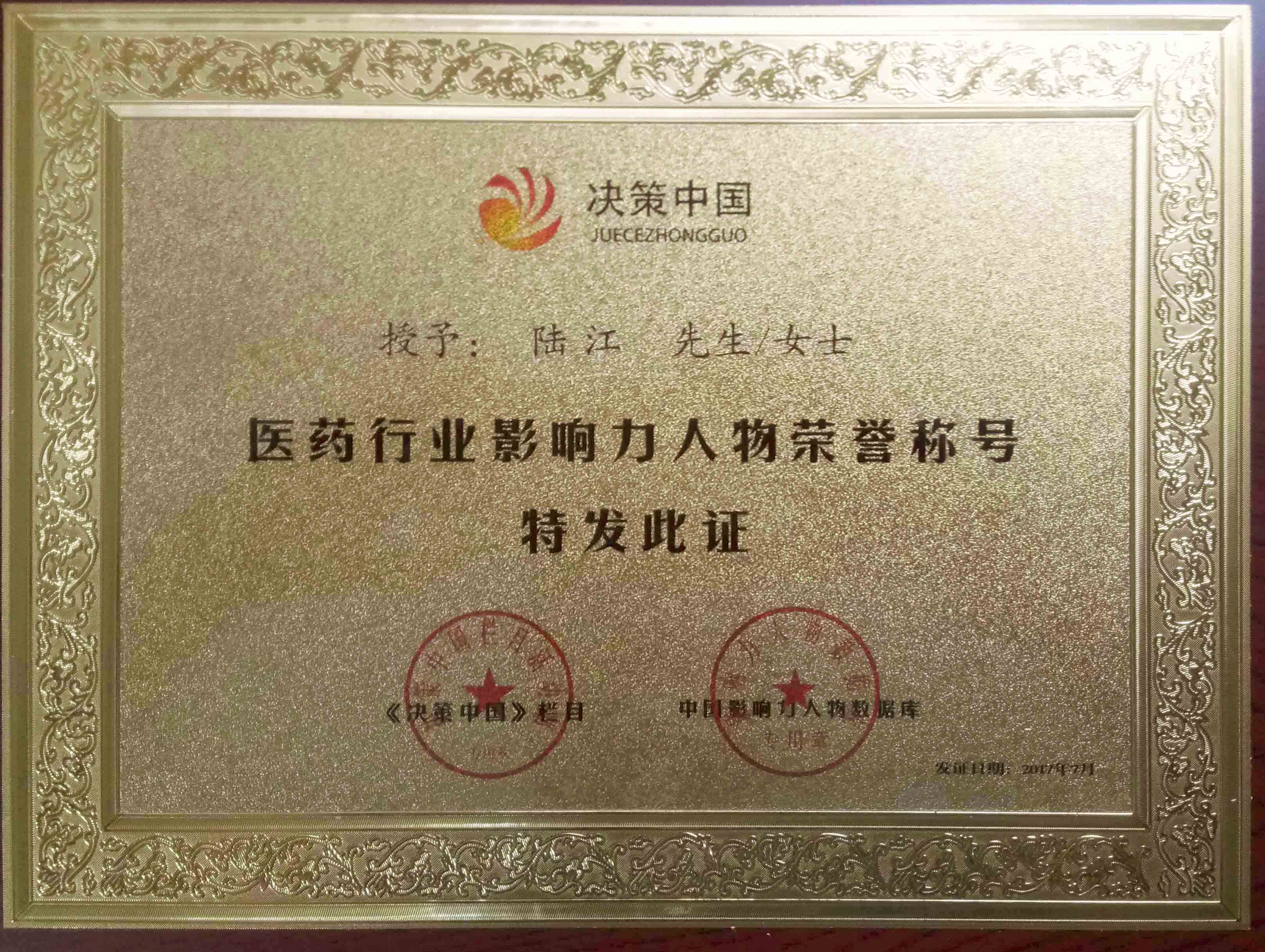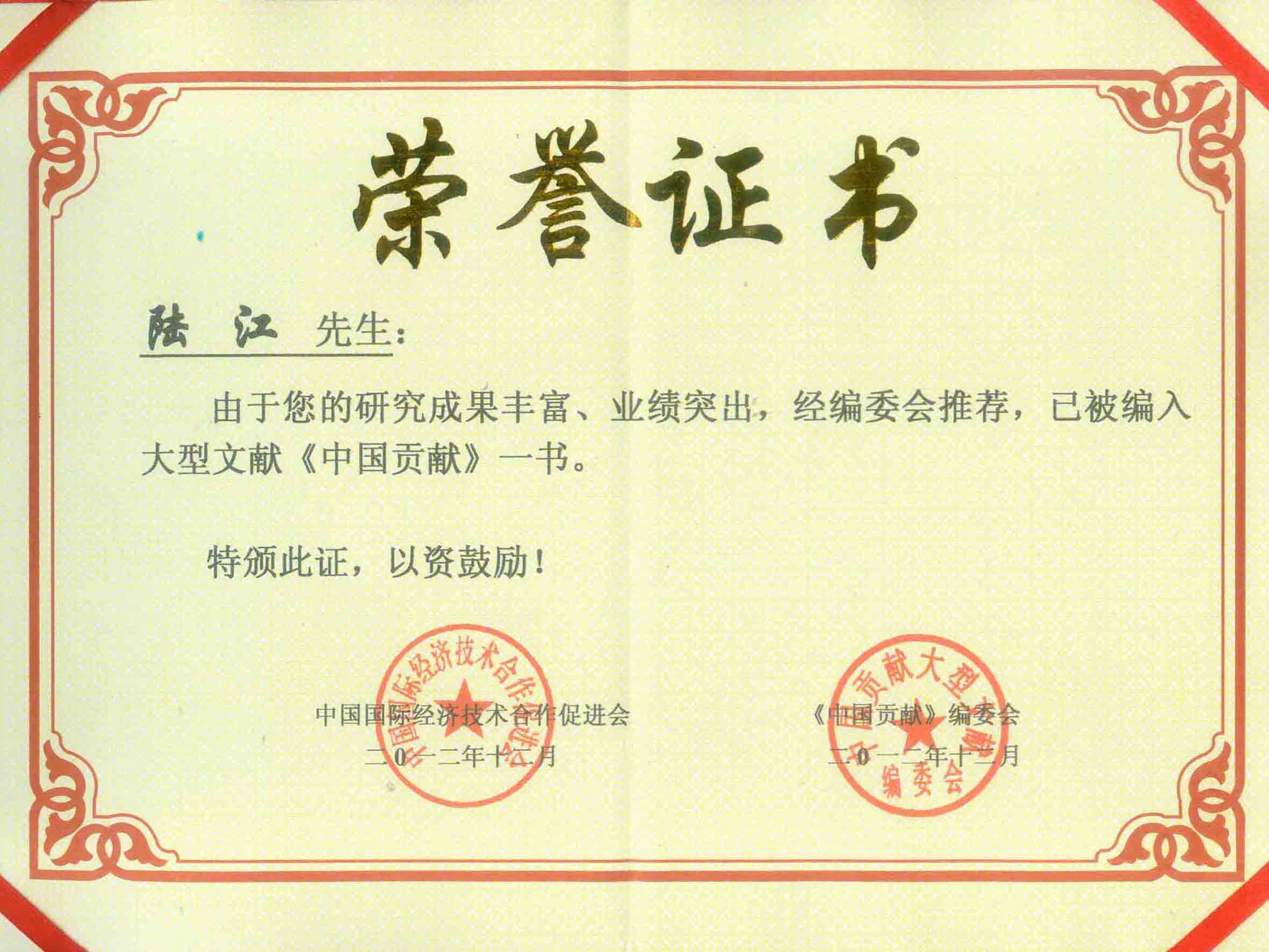 陸江獲得中國醫(yī)學(xué)??茖2?yōu)秀專家恃別貢獻(xiàn)獎(jiǎng)